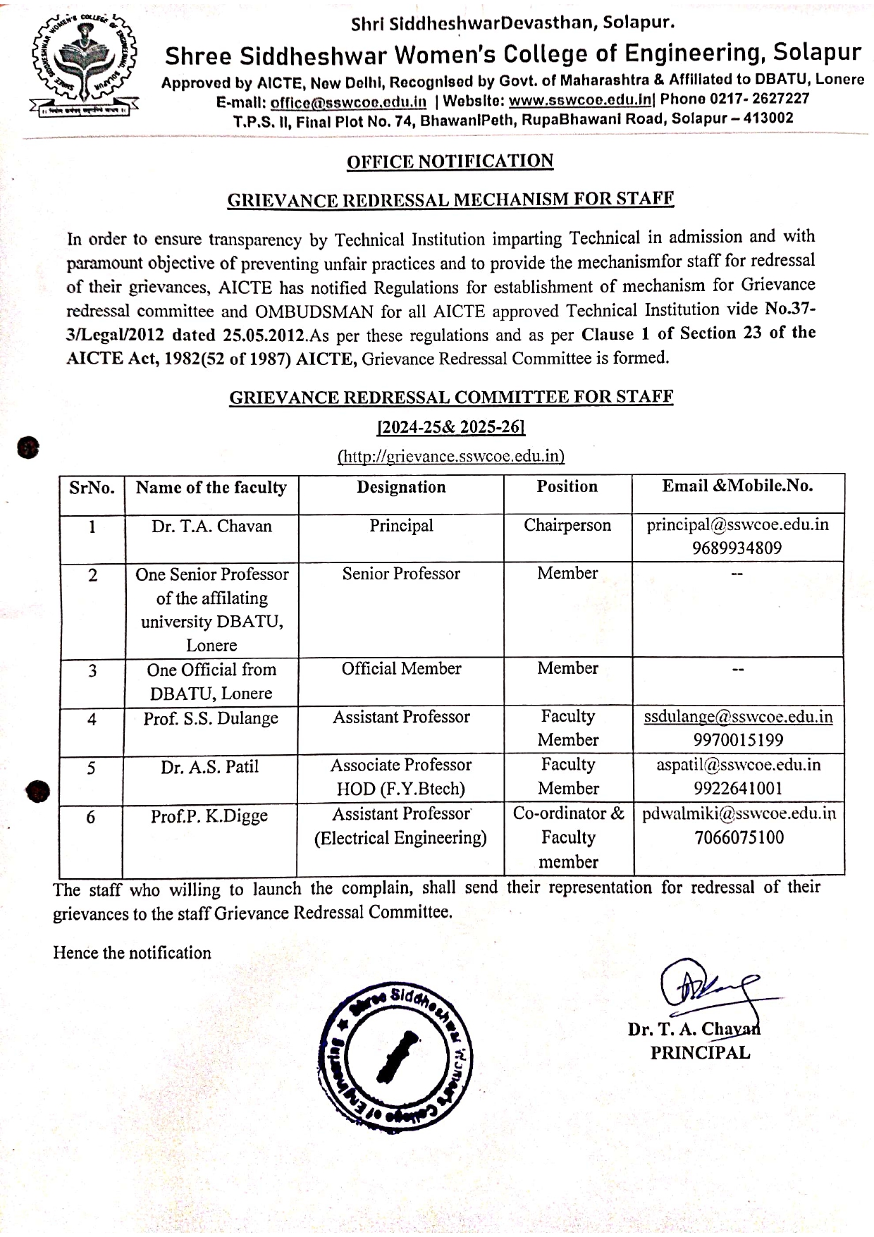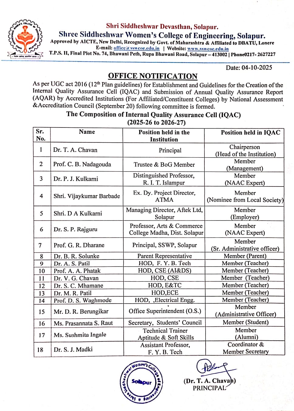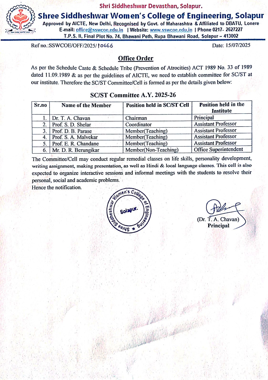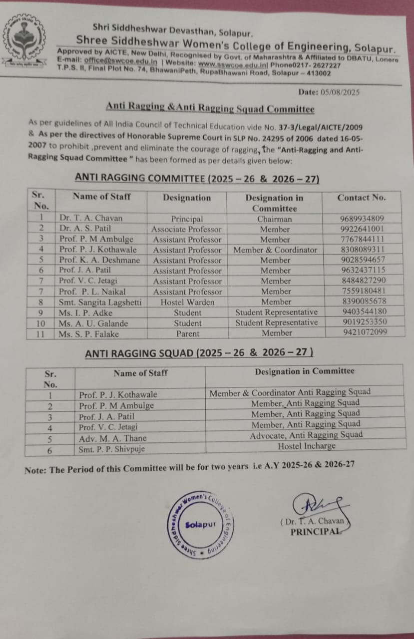 first women’s Engineering College in Solapur District, which is run by Shri Siddheshwar